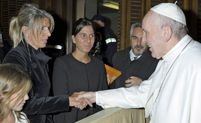 El papa Francisco saludó en el Vaticano a las hijas de Alberto Nisman y a su ex esposa, la jueza Sandra Arroyo Salgado, quienes ahora viajarán a Israel para participar en un homenaje al fallecido fiscal de la causa AMIA.