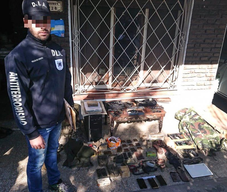 Durante el procedimiento se arrestó a nueve personas que tenían en su poder un verdadero arsenal, que incluía armamento de guerra de grueso calibre, además de uniformes militares, mientras que en los sitios allanados se encontró también bibliografía nazi.