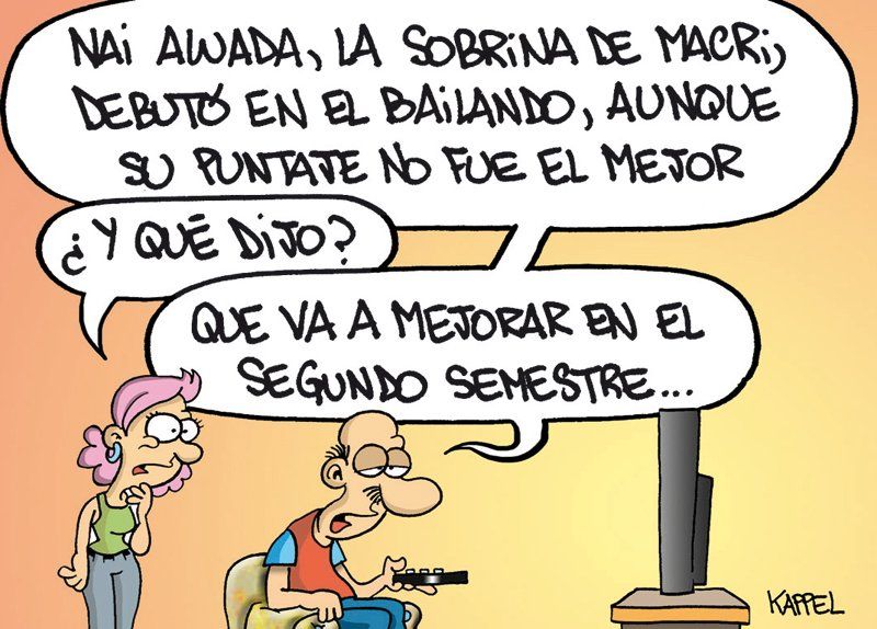 Inicio País Naiara Awada El humor de Kappel. 06 de junio de 2017 - 08:42 El famoso segundo semestre para todo Por UNO Temas relacionados: Naiara Awada El humor de Kappel Humor Macri las más leídas Casas Cómo es el plan del IPV para tener una casa propia y pagar cuotas de menos de $300.000 Por Daniel Calivares Memoria, verdad y justicia A 50 años del golpe militar de 1976: el relato de una ex presa política sobre las violaciones en Mendoza Por Paola Alé ANSES Créditos ANSES: cómo saber cuántas cuotas quedan por pagar y sus montos Por Daniel Calivares Su testimonio Es mendocina y fue apropiada por un ex comisario la nieta recuperada que aparece en el video del gobierno Por Luciano Bertolotti