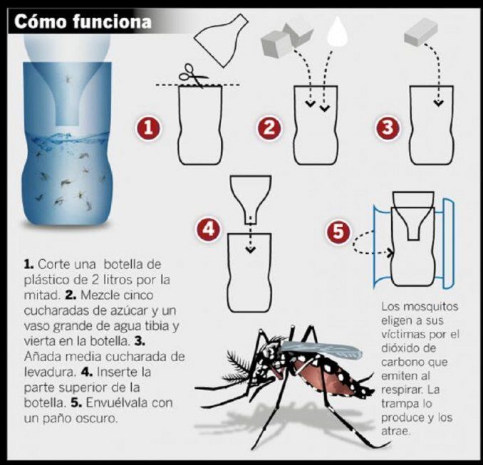 El metódo casero, que se da a conocer tras la presencia de casos de dengue en distintos lugares del país, dura entre 10 y 15 días y se utiliza un preparado de agua, azúcar y levadura, según indicó el portal Misiones Online.Ante la aparición de casos, desde la Secretaría de Promoción de Programas Sanitarios de la Nación informaron que el país mantiene un alerta ante la delicada situación sanitaria que atraviesan Paraguay y Brasil.