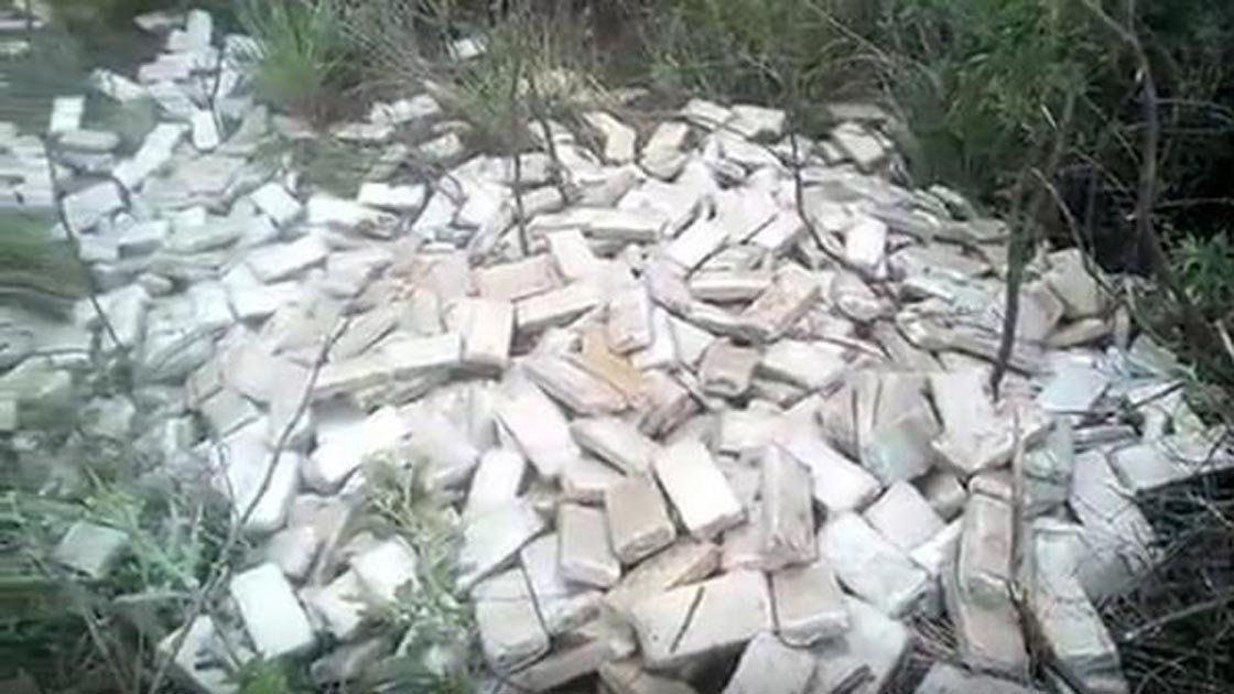 Parte de la carga fue encontrada a la vera de la ruta provincial 30; también a unos dos kilómetros de la ruta nacional 14 y a unos cuatro kilómetros del mencionado municipio, todos en un amplio radio de la zona rural, conformada por minifundios de diversos cultivos.