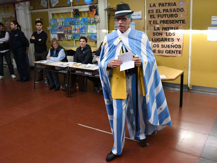 En la escuela Wenceslao Posse uno de los votantes sorprendió con su colorido y patriótico atuendo y por la alegría de "tener que venir a votar".