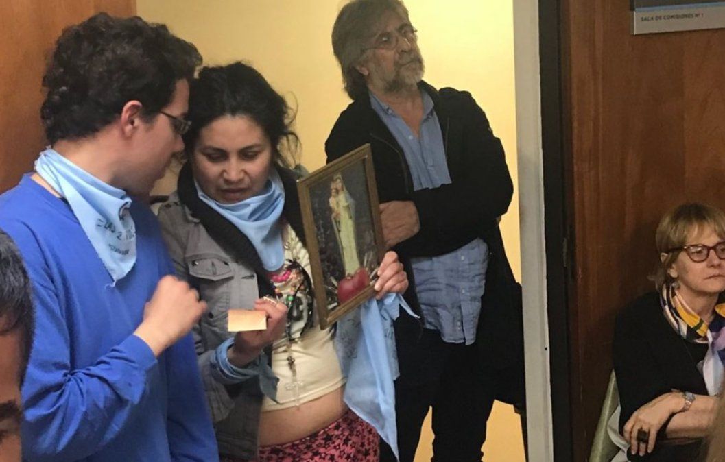 Rezos, imágenes religiosas y agresiones estuvieron presentes durante todo el tratamiento de la iniciativa, que, a pesar de la negativa de varias personas presentes con pañuelo celeste antiaborto, obtuvo dictamen favorable para pasar al recinto.