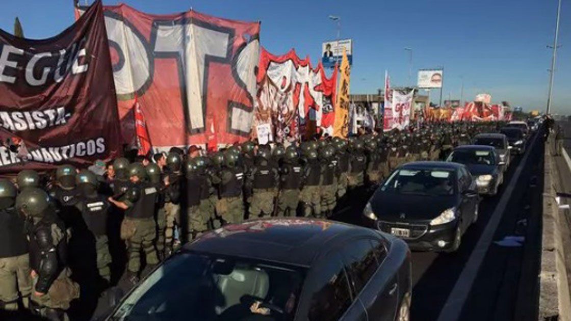 Minutos antes, la ministra de Seguridad, Patricia Bullrich, había informado que la Gendarmería tiene la orden de garantizar el tránsito en la Panamericana, altura 197, donde representantes de distintos partidos de izquierda realizan una protesta para garantizar la efectividad del paro general convocado por la CGT.