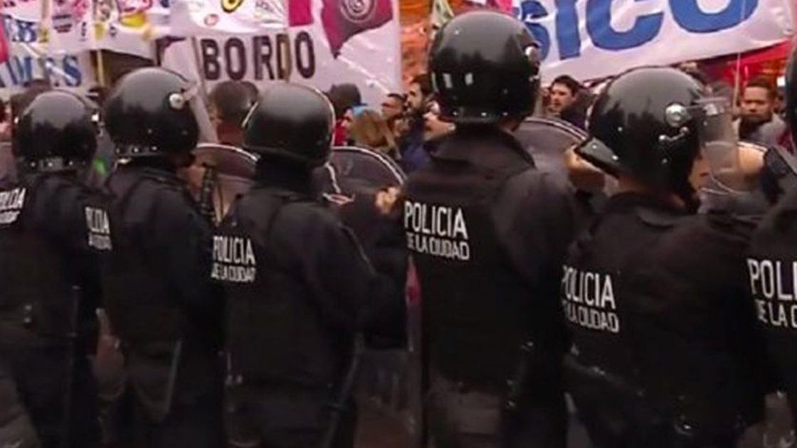 Cuando la columna se desplazaba por la Avenida Rivadavia en dirección hacía el Congreso, se encontraron con un importante dispositivo de seguridad, compuesto principalmente por efectivos de la Policía y de Infantería.