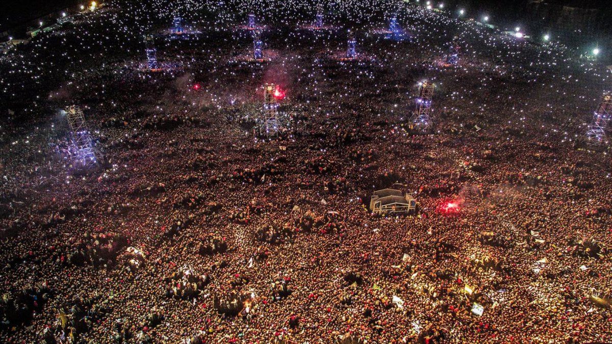 A pesar de que se esperaba la misma cantidad que en Tandil, los testigos aseguran que fue mucha más gente de la esperada. Muchos de ellos aseguran que nunca les cortaron el ticket de ingreso y que tantos otros ingresaron sin entrada. Muchas voces aseguran que al recital concurrieron entre 300 y 550 mil. La foto no te confirma la cantidad exacta aunque demuestra que hubo mucha más gente de la esperada.
