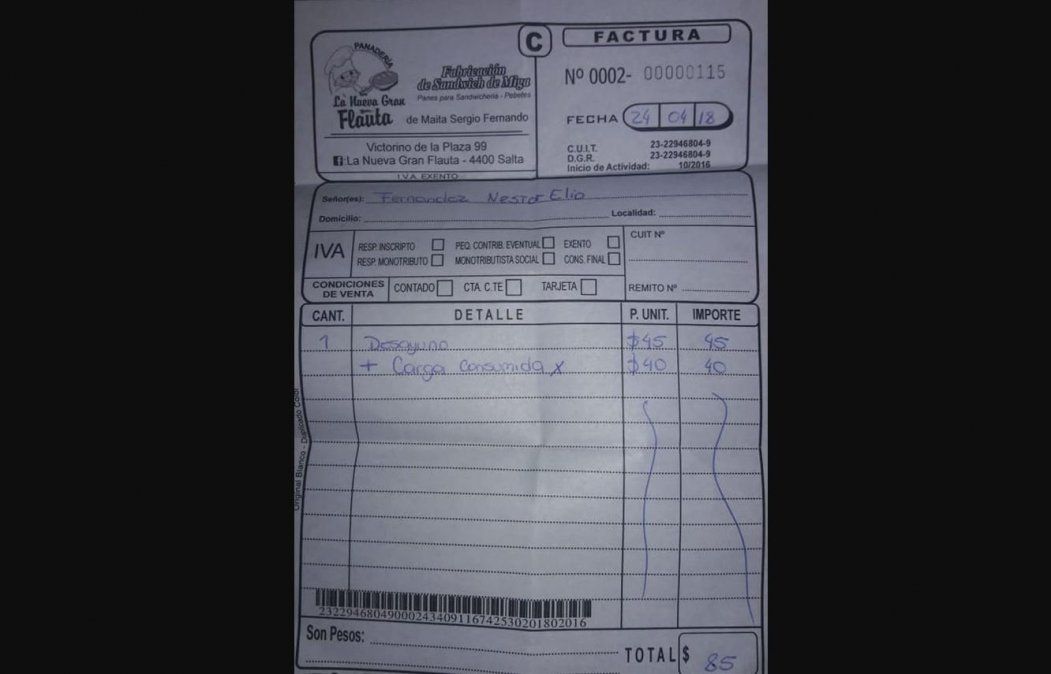 Cabe resaltar que el profesor remarcó que los empleados de la confitería se negaron en un primer momento a darle la factura como comprobante porque "estaba vencida" y solo atinó a sacarle una foto para tener una prueba de la "estafa", según sus palabras, a la que fue sometido.
