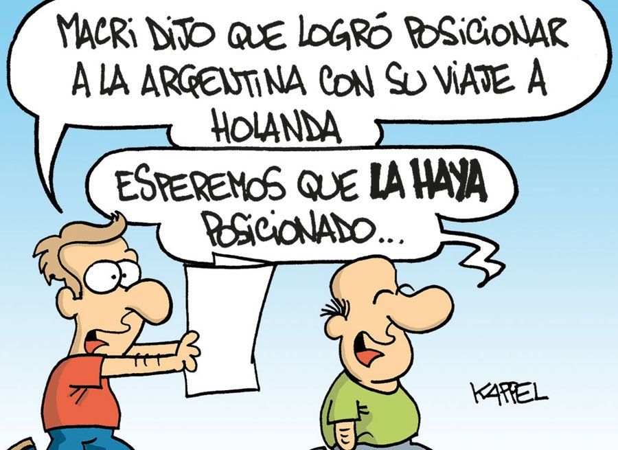 Inicio País El humor de Kappel El humor de Kappel. 31 de marzo de 2017 - 08:12 Juego de palabras Por UNO Temas relacionados: El humor de Kappel Humor Macri las más leídas Mundo El mayor fabricante de electrodomésticos cerró su fábrica en Argentina y decidió que otro país de la región absorba todo Por Valentina Araya ¡No te olvides! Banco Nación supermercados regresa este miércoles con MODO para ahorrar hasta $72.000 Ciberdelitos Desarticularon en San Rafael una red de estafas con tarjetas que afectó a 800 personas en el país Por Pablo Abihaggle Política nacional Cornejo respaldó el rumbo económico del país y pidió sostener el ajuste y el equilibrio fiscal Por Paola Alé