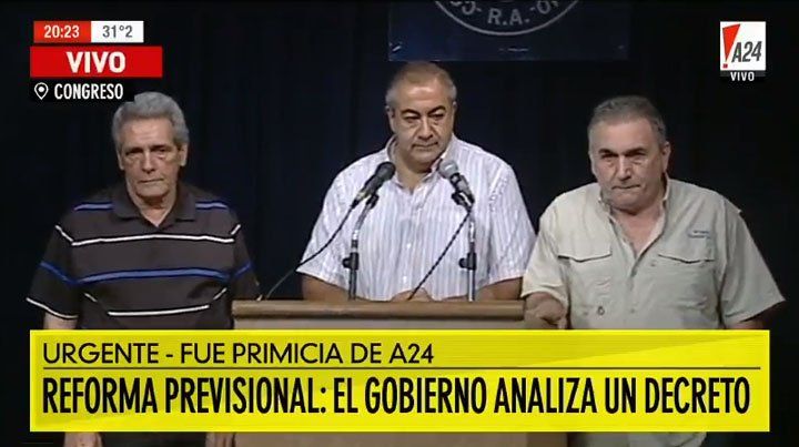 Héctor Daer, integrante del triunvirato de la CGT, anunció cerca de las 20.30 que realizará un paro a partir de la medianoche en caso que se lance la reforma previsional mediante un decreto de necesidad y urgencia.