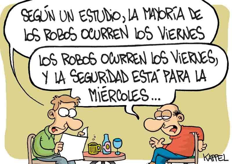 Inicio País El humor de Kappel El humor de Kappel. 03 de febrero de 2017 - 05:05 Los días de la inseguridad Por UNO Temas relacionados: El humor de Kappel Humor las más leídas Tragedia en el escuela Una nena de 6 años se golpeó la cabeza en el recreo y murió Por Pablo González Mundo El aeropuerto sobre la cordillera de los Andes que un país de Sudamérica moderniza con más de US$30 millones y estará listo en 2027 Por Valentina Araya Elecciones Cuatro fórmulas con el radicalismo fracturado componen por ahora la carrera por la UNCuyo Por Pablo Abihaggle Nueva medida Los colegios del Arzobispado confirmaron que limitarán el uso de celulares a fines pedagógicos Por Pablo Abihaggle