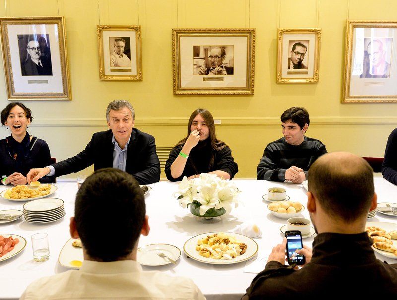 El presidente Mauricio Macri compartió un almuerzo con un grupo de jóvenes que visitaron la Casa Rosada y que son usuarios frecuentes de la plataforma Taringa!, una de las comunidades de origen argentino más grandes de internet.