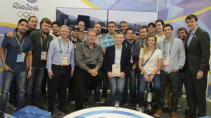Durante la entrevista el Presidente fue conectado con un móvil de prensa que estaba haciendo notas en los centros de entrenamiento de los Juegos y saludó al tenista Juan Martín del Potro, quien el domingo debutará enfrentando al número 1 del mundo, el serbio Novak Djokovic, y a Facundo Conte, una de las figuras del equipo nacional de voley.