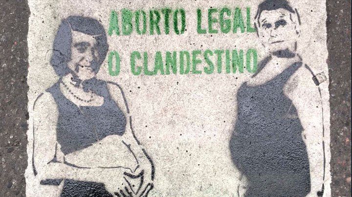 Un original grafitti apareció pintado este miércoles en las inmediaciones del Congreso, donde se debate sobre la despenalización del aborto.