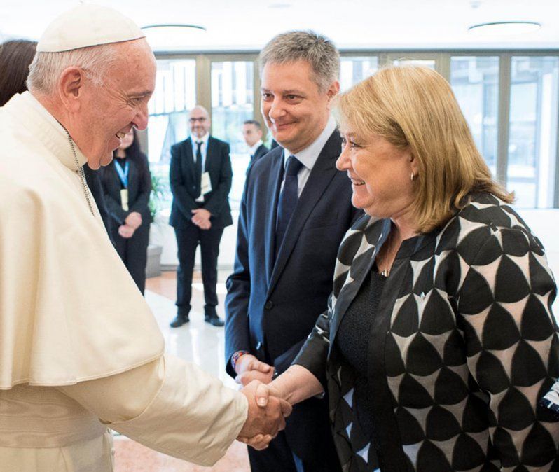 Malcorra compartió a través de su cuenta de Twitter una foto recibiendo el saludo de Francisco, quien participó de la sesión inaugural del organismo internacional, del que participaron además, quince ministros de distintos países.