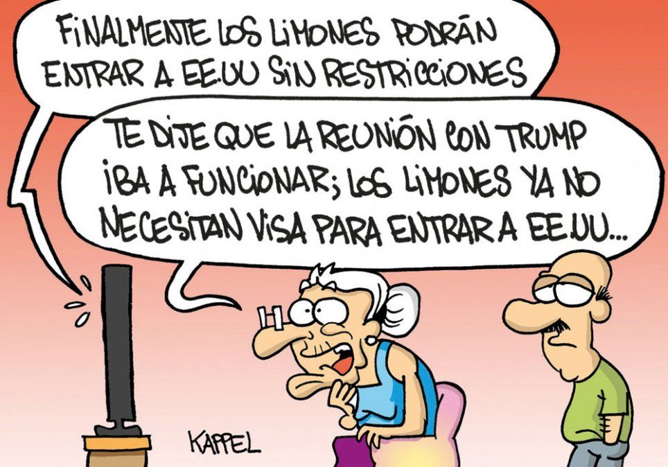 Inicio País El humor de Kappel El humor de Kappel. 04 de mayo de 2017 - 08:41 Me mata el limón Por UNO Temas relacionados: El humor de Kappel Humor las más leídas Reciclaje Si tenés medias con agujeros en tu placar, tenés un tesoro: para qué sirven y cómo usarlas nuevamente Por Martina Baiardi Se quemó el Data Center Arquitectos advirtieron posibles demoras en obras y pérdidas de expedientes tras el incendio en Guaymallén Por Analía Doña Ciberdelitos Desarticularon en San Rafael una red de estafas con tarjetas que afectó a 800 personas en el país Por Pablo Abihaggle Mundo El mayor fabricante de electrodomésticos cerró su fábrica en Argentina y decidió que otro país de la región absorba todo Por Valentina Araya