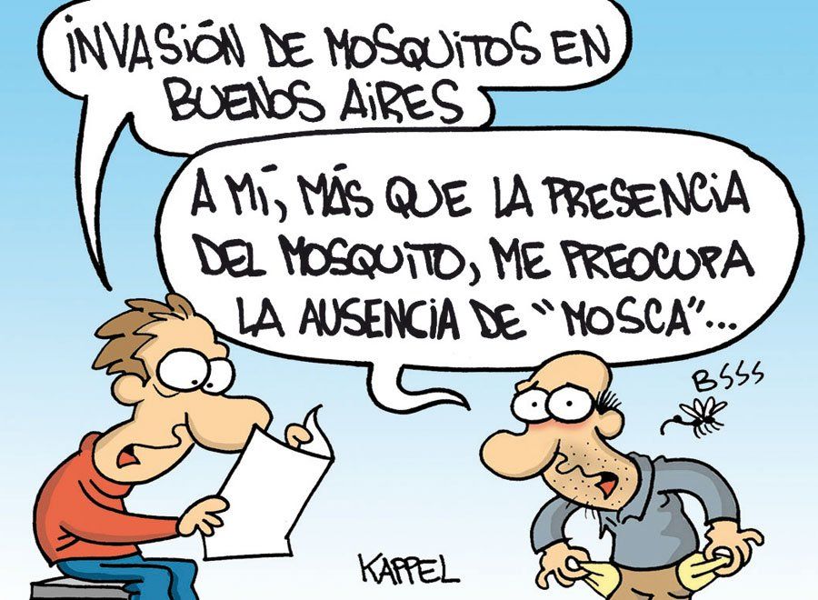 Inicio País El humor de Kappel El humor de Kappel. 03 de mayo de 2017 - 08:59 Mucho mosquito, mucho mosquito... ¿y la mosca dónde está? Por UNO Temas relacionados: El humor de Kappel Humor las más leídas Reciclaje Si tenés medias con agujeros en tu placar, tenés un tesoro: para qué sirven y cómo usarlas nuevamente Por Martina Baiardi Se quemó el Data Center Arquitectos advirtieron posibles demoras en obras y pérdidas de expedientes tras el incendio en Guaymallén Por Analía Doña Mundo El mayor fabricante de electrodomésticos cerró su fábrica en Argentina y decidió que otro país de la región absorba todo Por Valentina Araya Ciberdelitos Desarticularon en San Rafael una red de estafas con tarjetas que afectó a 800 personas en el país Por Pablo Abihaggle