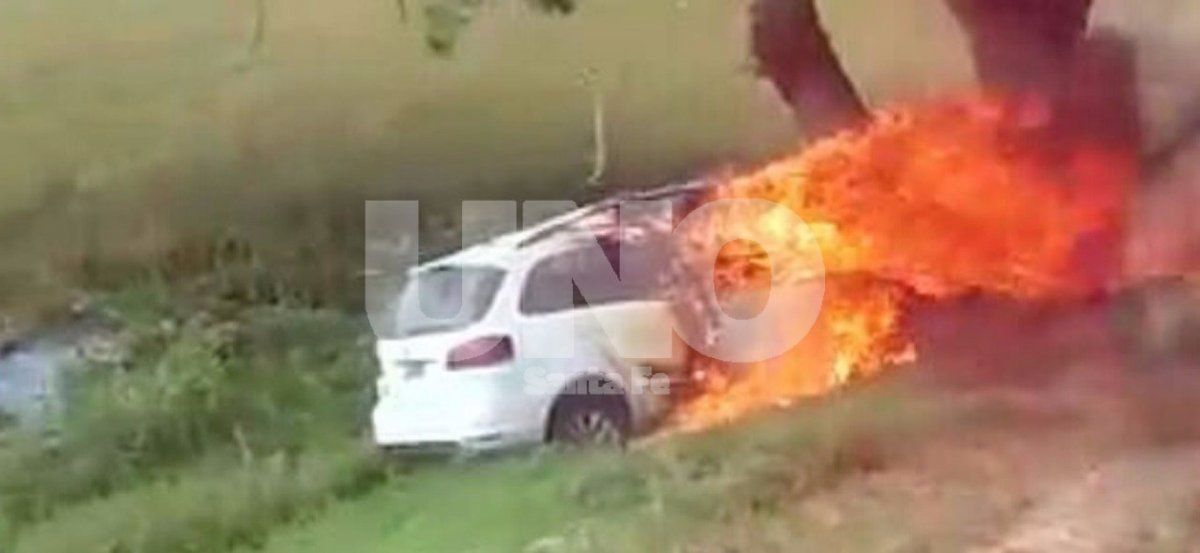 Una mujer que conducía su automóvil VW modelo Surán blanco abandonó el pavimento, cruzó la banquina, ingresó al interior de un campo, chocó violentamente contra un árbol, y finalmente se prendió fuego.