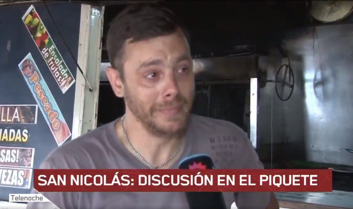 El comerciante tuvo una fuerte discusión con quienes protestaban, apagó el fuego de las gomas que quemaban frente a su local y les pidió llorando que le permitieran trabajar. La respuesta que recibió: "La culpa es del presidente".