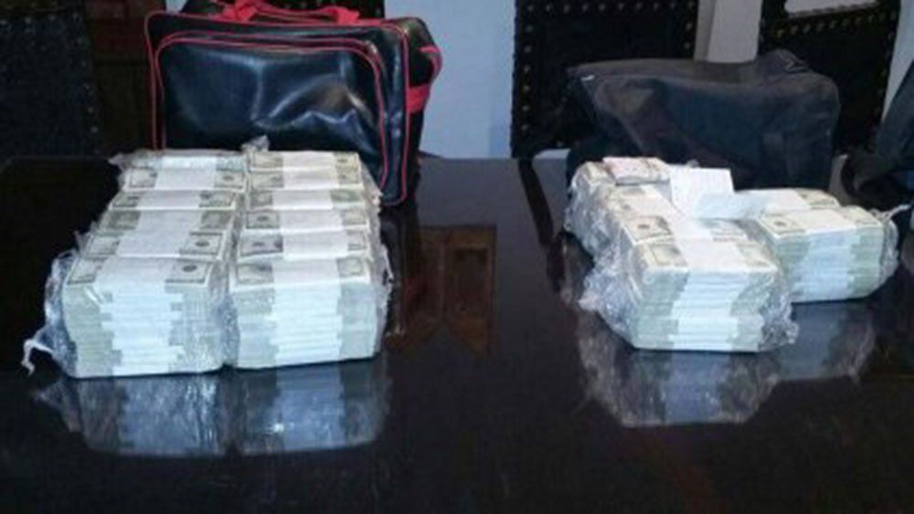 "Habiéndose presentado peritos y procedido a la apertura de la valija citada se constata que contiene fajos de dólares. Fiscal dispone se realice conteo dinero", concluye.