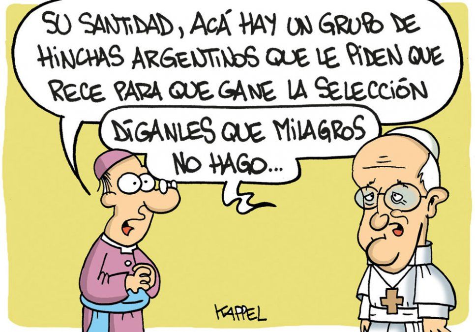 Inicio País Humor El humor de Kappel. 26 de junio de 2018 - 10:12 Si su santidad no lo puede hacer... Por UNO Temas relacionados: Humor El humor de Kappel las más leídas Alerta Sofía Se perdió una niña de 4 años y activaron el Alerta Sofía Por Pablo González Proyecto de ley Quiénes son los dueños de las 90 hectáreas que buscan expropiar para el polo logístico de la Ruta 7 Por Analía Doña ¿Jugaste? Quini 6: los resultados del sorteo 3368 del domingo 26 de abril Por Fabricio Panella Control de Gendarmería Comercio ilegal y contrabando desde Chile: ya se detectaron 75 casos por $250 millones Por Miguel Ángel Flores Te puede interesar Sábado 25 de abril Chapote y Marita Parangachully se juntan por primera vez en el Teatro Quintanilla Neurociencia y bienestar Risa y cerebro: cómo el humor protege la salud y reduce el estrés
