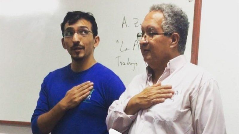 Un profesor que se había hecho viral en las redes sociales tras dar clases con mellizos en sus brazos, aplicó ahora una insólita "prenda" a uno de sus alumnos que llegó tarde a clases.José Cañote, que dicta distintas materias en la carrera de Comunicación Social en la Universidad del Norte Santo Tomás de Aquino, en Tucumán, le hizo cantar el Himno Nacional a un alumno por haber llegado tarde a clases.Sin embargo, no lo hizo solo: el maestro y sus compañeros también cantaron y acompañaron al estudiante que interrumpió la clase.El profesor manifestó al diario La Gaceta que se distrae con facilidad cuando alguien llega tarde a una clase y le cuesta retomar, por lo que decidió tomar medidas al respecto.Cañote aclaró que su metodología es diferente a la de otros profesores."Algunos les cierran la puerta en la cara a los alumnos y no los dejan entrar. Yo prefiero que ingresen a la sala, pero que se note que llegaron tarde, por eso les pongo una prenda ," contó el profesor.Cañote afirmó que su técnica tiene resultado y que los estudiantes llegan a tiempo a su clase. Explicó que es la manera de enseñarles que la impuntualidad es un problema y está mal."No solo intentan no llegar tarde, sino que además realizan el esfuerzo por llegar temprano", concluyó.No es la primera vez que Cañote sorprende al alumnado. La última dio clases con dos mellizos en brazos para que su mamá pudiera tomar apuntes en la carrera de Comunicación Social de la Unsta.Uno de sus alumnos lo fotografió, la imagen se hizo viral.