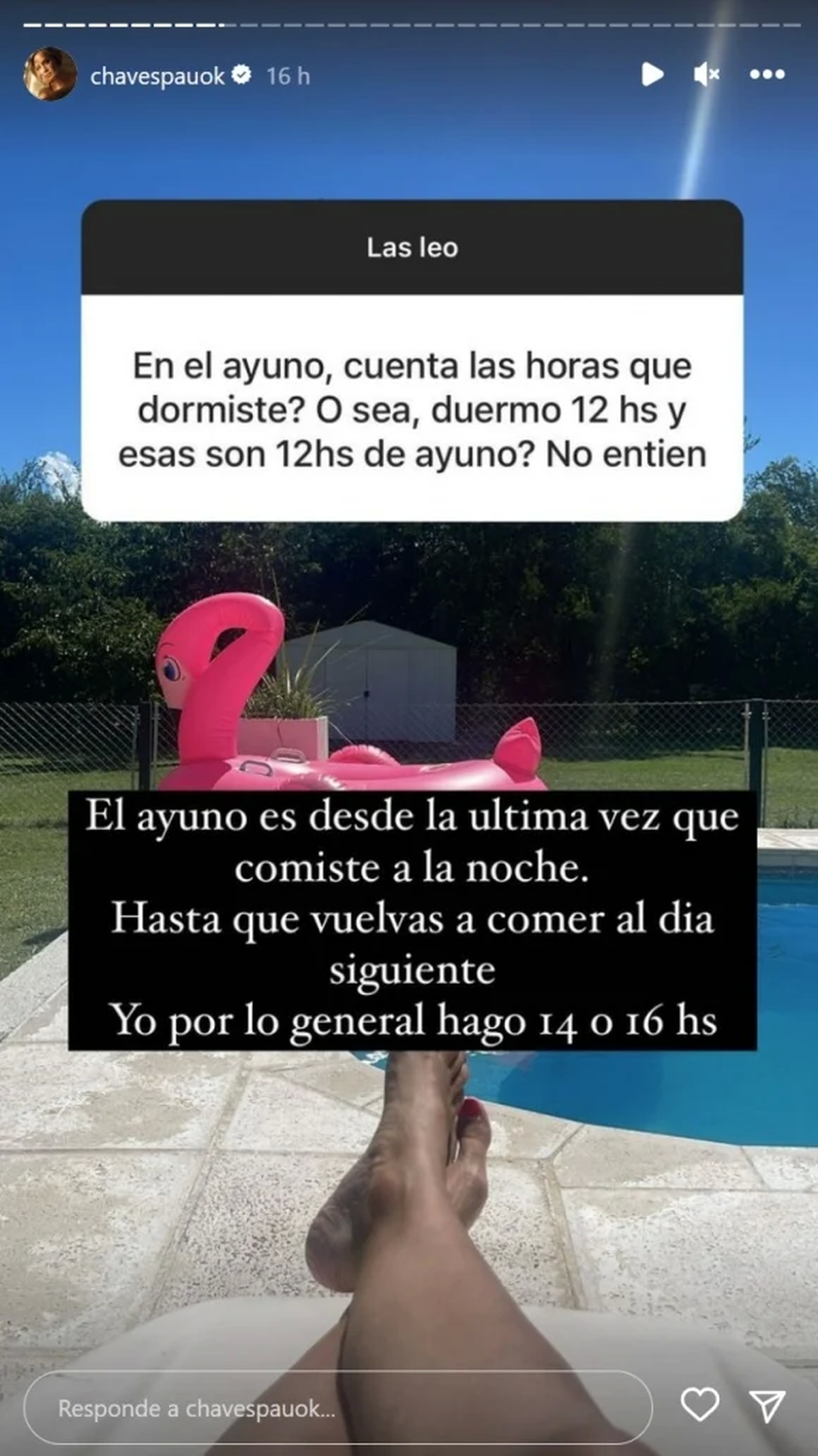 "No es sano que digas eso", "No todas pueden hacerlo", fueron algunos de los comentarios que escribieron indignadas mientras que Paula Chaves no dudó en despejar dudas y aclaró que sigue su dieta con supervisión de una nutricionista.