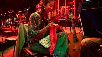 Padre, madre, esposas y tíos, los Bravo llegaron desde San Carlos para bailar en la Vendimia 2025. Además, una música llevó sus tejidos al teatro griego