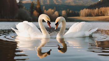 Un video que parece una escena de película romántica, dos cisnes deslizándose sobre el agua en un baile con su ritual de cortejo más puro y natural