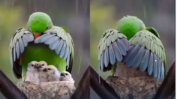 El video de este pequeño pajarito demuestra que el instinto de protección no tiene límites, cuidando de sus crías con ternura bajo sus alas extendidas