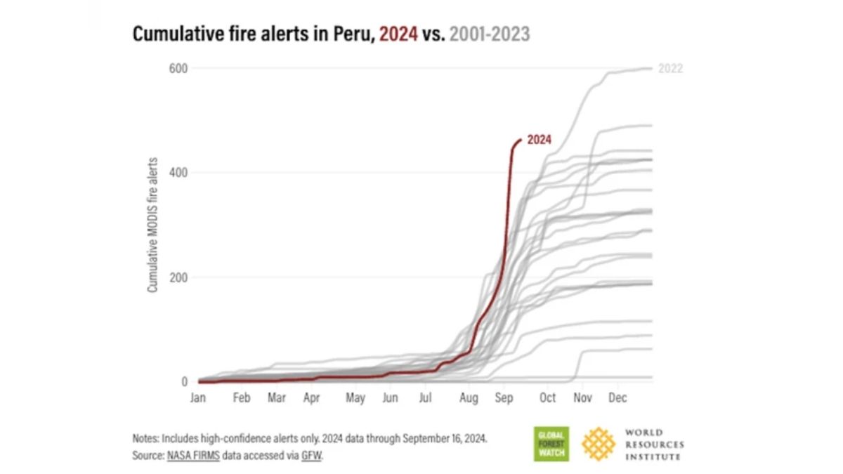 En Perú, ya sumaron en 2024 casi 300 los siniestros; unos 50 siguen activos a pesar de los intentos de bomberos por mitigarlos. Las alertas han sido más del doble del promedio de lo que se ha visto en las últimas dos décadas.