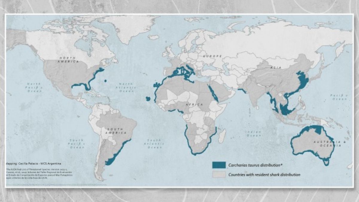 En el Mar Argentino existen unas 12 especies de grandes tiburones, presentes tanto en las costas, en mar abierto, como en las profundidades. Viajan grandes distancias e inclusive suelen migrar a aguas de otros países o aguas internacionales. Son predadores tope y comparten otra característica: su tasa reproductiva es baja, por lo que si aumenta su mortalidad, las poblaciones rápidamente caen. En este marco, el estado de conservación en el Atlántico sudoccidental del tiburón escalandrún (Carcharias taurus), representante por excelencia de nuestras costas, es crítico.