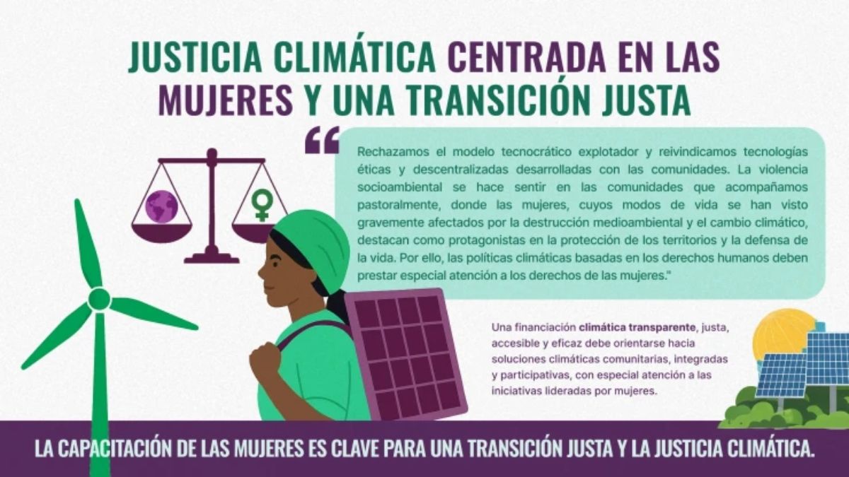 Los líderes destacan la justicia en la transición energética, afirmando que "defendemos la justicia climática, garantizando que las decisiones de la COP30 y otras prioricen a las personas empobrecidas por encima de la lógica corporativa que profundiza las desigualdades". Con especial atención tanto al daño desproporcionado a las mujeres como a la capacidad de liderazgo de las mujeres, piden "políticas y programas descentralizados de energías renovables" que "promuevan el trabajo decente para las mujeres a todos los niveles, apoyen el espíritu empresarial de las mujeres en el sector de las energías renovables".