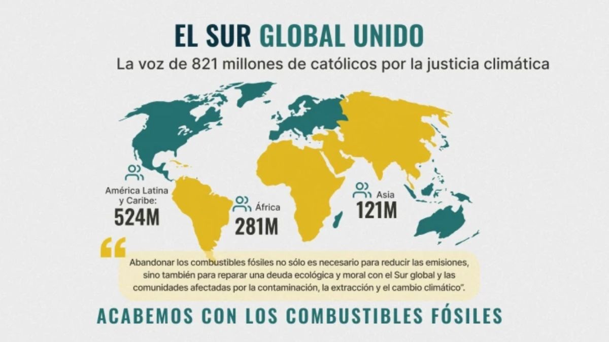 Identificando claramente "quién está destruyendo la Tierra y quién está ofreciendo falsas soluciones", la Iglesia católica del Sur global exige "una transición que abandone los combustibles fósiles y la paralización de las nuevas infraestructuras relacionadas, con plazos definidos, medidas concretas de rendición de cuentas y políticas públicas" al tiempo que "se oponga a los esquemas fraudulentos de compensación de carbono y a la financiarización de los bienes comunes". Los líderes instan a los responsables políticos a "eliminar progresivamente los combustibles fósiles, poniendo fin a todas las nuevas infraestructuras y cobrando los impuestos adecuados a quienes se han beneficiado de ellas".