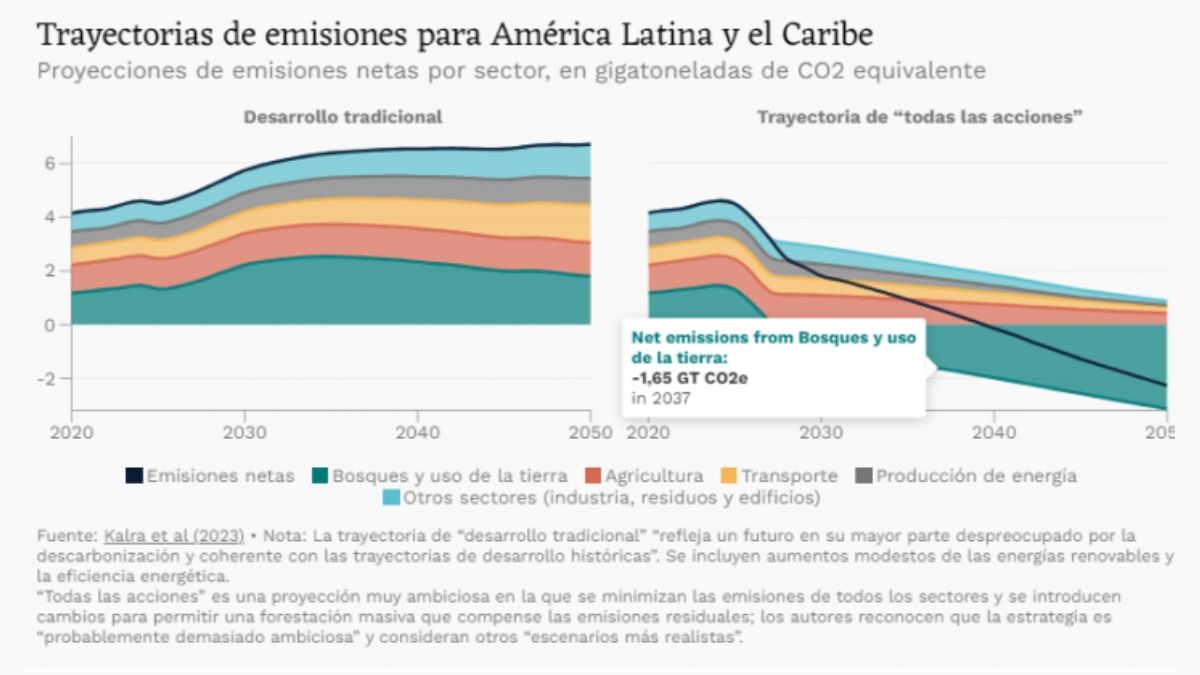 Aunque hay muchos caminos específicos que los países de la región pueden seguir hacia el desarrollo económico, hay tres áreas de cambio que son críticas para cualquier vía de descarbonización: producir electricidad e hidrógeno a partir de energías renovables; electrificar el transporte; y convertir la tierra en un sumidero neto de carbono, protegiendo los bosques y cambiando las prácticas agrícolas para apoyar la forestación.