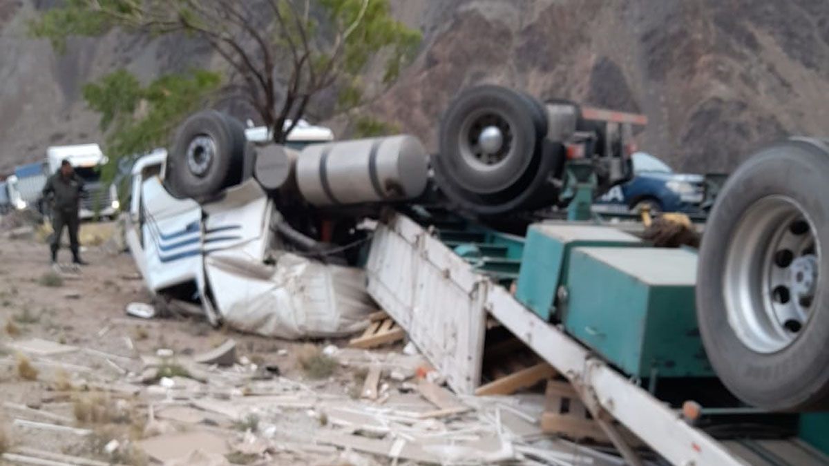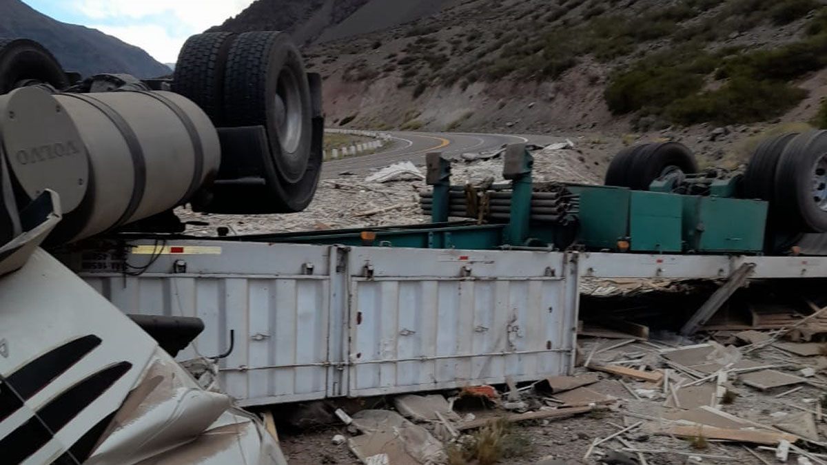 El accidente ocurrió a la altura de Polvaredas, donde el camión con un semirremolque se dirigía de oeste a este, y por razones que se desconocen se produjo el vuelco del rodado de gran porte.