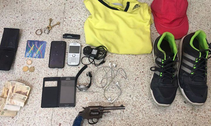 Lo atraparon y al revisarlo encontraron que tenía un revólver calibre 22, un reloj, un celular, auriculares y unas zapatillas.