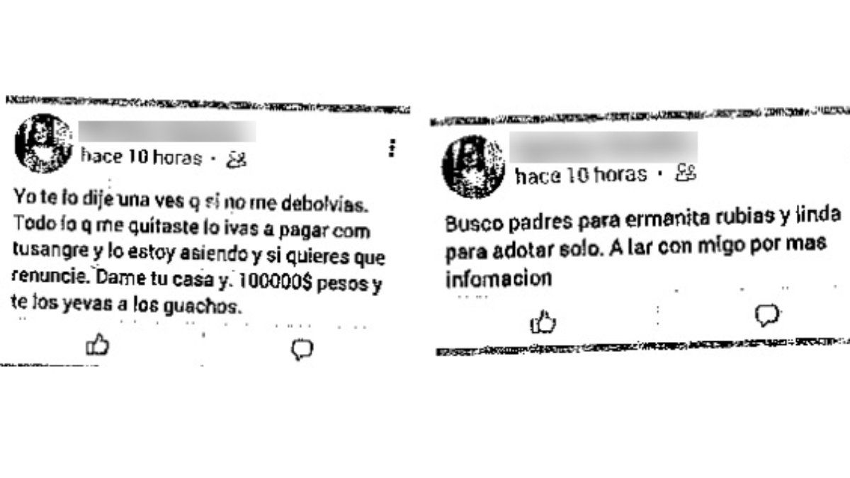Mientras tanto, desde el entorno de los detenidos aseguran que la vecina planificó todas las denuncias para obtener una ganancia y la denunciaron por ofrecer dinero a cambio de los niños. Hasta aportaron un usuario de Facebook donde hay posteos burlándose del matrimonio, de la Justicia y de la Policía, aunque para los investigadores es a todas luces un perfil falso.