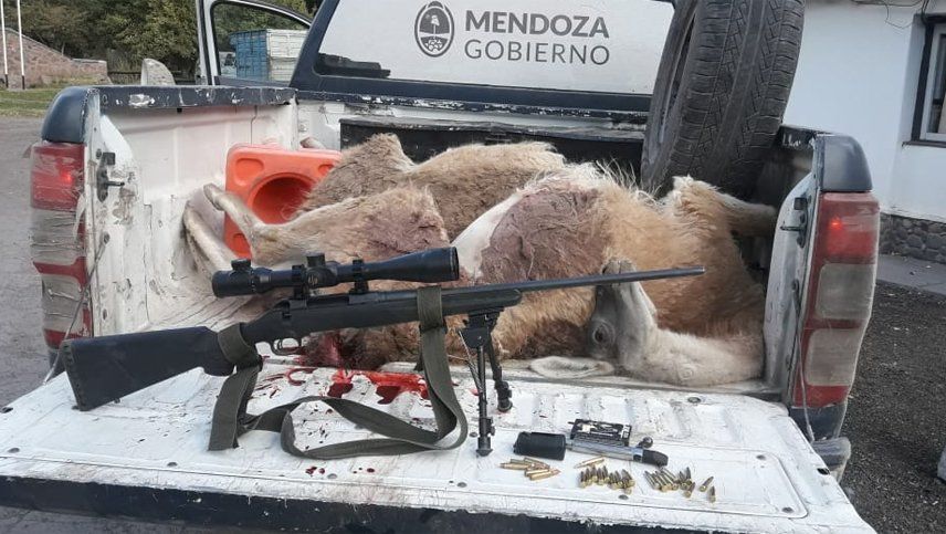 La Policía Rural detuvo a dos cazadores furtivos que acababan de matar a una pareja de guanacos, con el agravante de que la hembra estaba preñada.