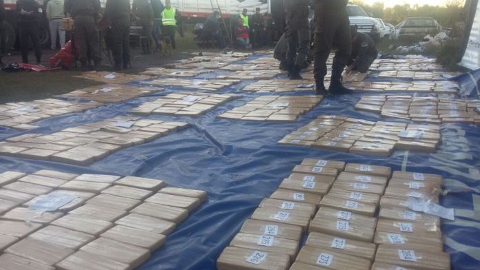 Cuando levantaron la lona, constataron 1.056 envoltorios rectangulares distribuidos en 33 bultos, ubicados por encima de otros que contenían arroz. La droga arrojó un peso total de 1.004 kilos. Además, se secuestraron numerosos teléfonos celulares, 5.614 pesos argentinos y 117.200 guaraníes. Según lo investigado, el destino de la droga en la República de Chile.