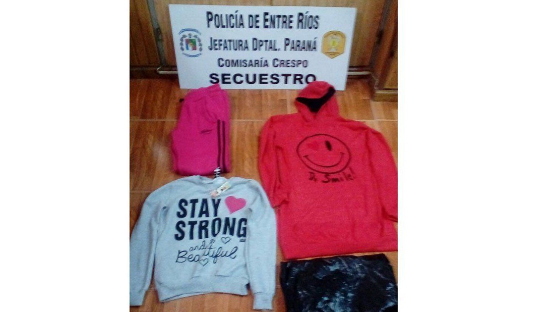 Un muchacho de 19 años ingresó el viernes pasadas las 20 a un local de venta de ropa, ubicado en calle 25 de Mayo en Crespo. Ingresó al vestidor en dos ocasiones, la primera con cuatro buzos de diferentes colores, y salió sólo con dos, una vez más realizó la acción pero con babuchas. Finalmente se retiró del local con dos buzos y dos babuchas debajo de sus prendas.