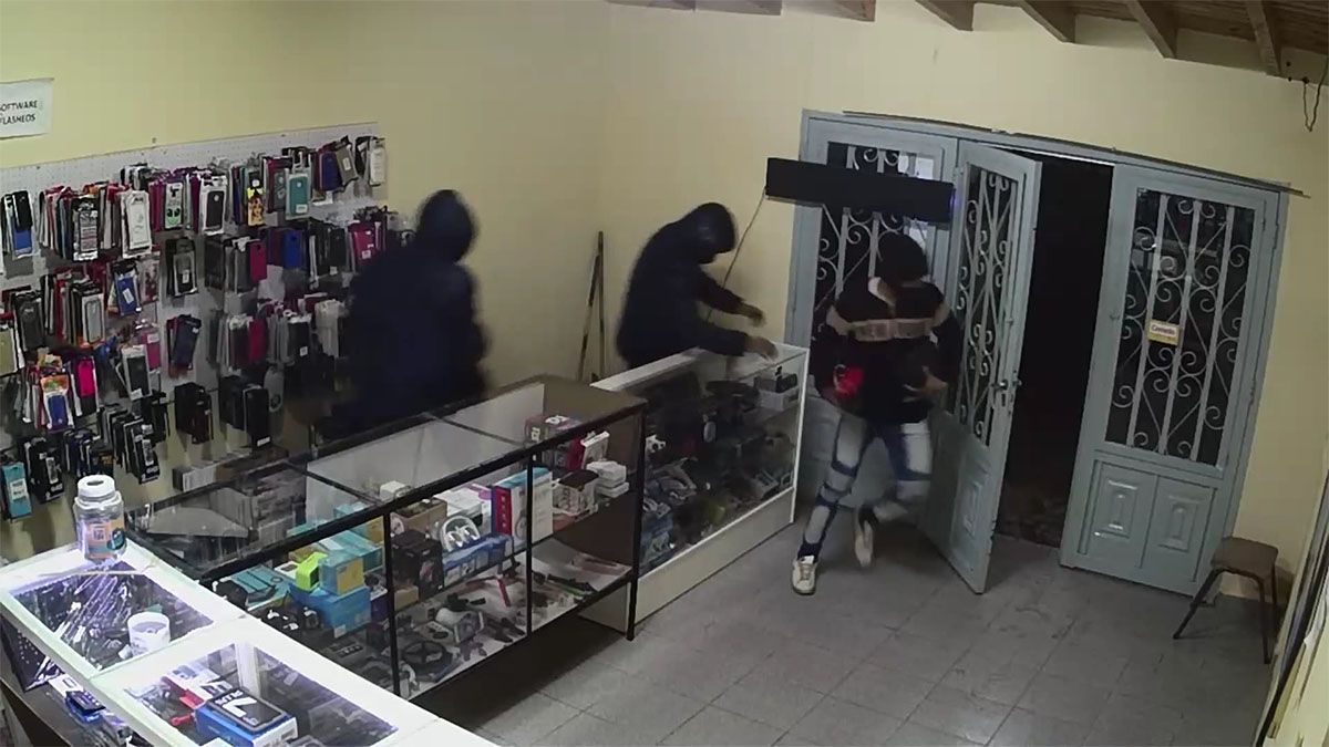 Cuatro ladrones quedaron grabados tras un asalto en un local de celulares