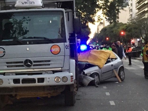 Un fatal accidente de tránsito ocurrió esta mañana en la ciudad de Rosario en las calles Pellegrini y Paraguay, cuando un auto quedó debajo de un camión de basura. Las cuatro personas que viajaban en el vehículo perdieron la vida.Un testigo de lo ocurrido explicó que el camión recolector estaba estacionado por la avenida, a pocos metros de la esquina donde funciona una tradicional parrilla de la ciudad, cuando el auto, un Chevrolet Corsa impactó con parte trasera.