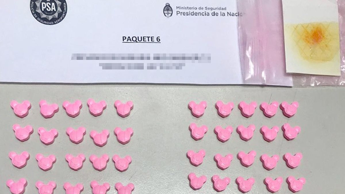 Luego de requisar al hombre y su equipaje, se comprobó que transportaba tres paquetes más de comprimidos rosados con forma del personaje Mickey Mouse, ocultos entre dos calzoncillos que llevaba puestos, y que además tenía cartones de LSD en su billetera y una bolsita con aparente sustancia “cristal”, añadieron las fuentes.