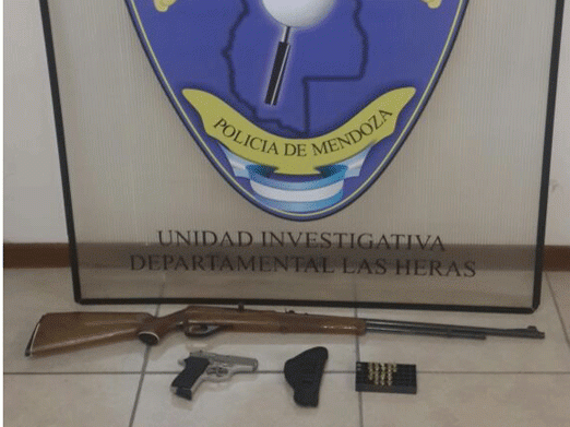 Cuatro personas fueron detenidas en Las Heras y Luján de Cuyo tras varios operativos donde también se secuestraron armas de fuego.En una vivienda ubicada en calle Colón del primer departamento atraparon a un hombre de 33 y una mujer de 32 años quienes tenían en su poder una carabina calibre 22 y una pistola calibre 3.80.