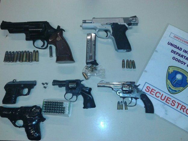 Tres hombres acusados de homicidios fueron detenidos en la mañana de este viernes en distintos operativos realizados en Godoy Cruz El Primer allanamiento se realizó en un puesto ubicado en Ruta Panamericana, a dos kilómetros del salón de eventos Desert. Allí la policía logró detener a un hombre de 22 años, indicado como el autor material de dos homicidios. También en el lugar secuestraron una pistola calibre 22 corto, un revólver calibre 32,cuatro cartuchos calibre .9mm, tres cartuchos calibre .32, trece cartuchos calibre .38 y una vaina servida calibre .22.