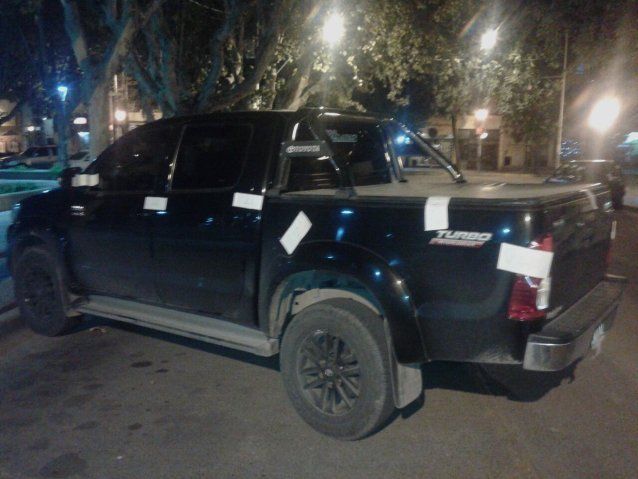 Eran cerca de las 18.30 del lunes cuando un móvil policial recorría la calle Dorrego, de Las Heras. Allí adviriteron que una camioneta Toyota Hilux negra circulaba a alta velocidad y con las luces apagadas, lo que les resultó sospechoso.Tras una corta persecución, los efectivos detuvieron la marcha del vehículo en calle San Martín, y bajaron a los tres ocupantes.