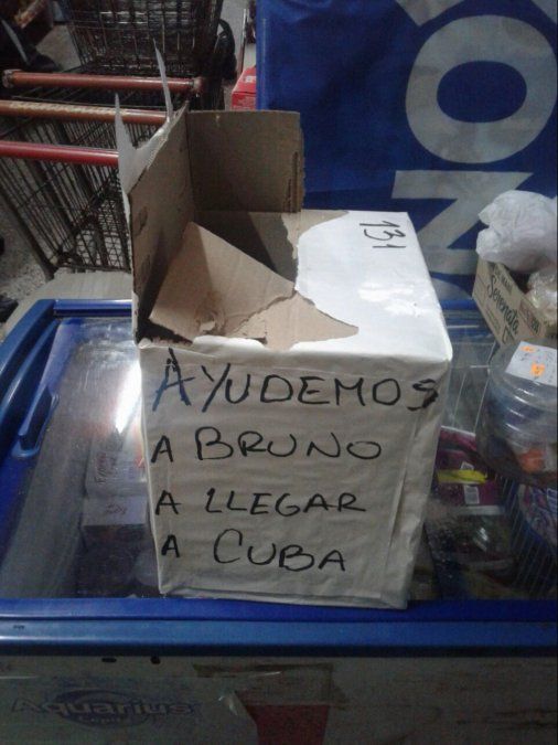 La caja tenía una consigna que decía "Un dólar por Bruno"; una campaña solidaria que viene llevando adelante la familia Escobar, para que el joven accidentado en un boliche bailable pueda llegar a Cuba y encarar su terapia de recuperación