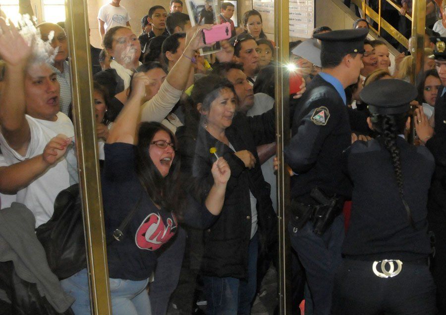 A tomatazos y botellazos fue recibido el sospechoso en Tribunales, mientras cientos de personas gritaban en su contra y mostraban pancartas con los rostros de sus seres queridos. La integridad de Sanhueza fue preservada por la policía y los elementos que le arrojaron pegaron contra las puertas de vidrio.