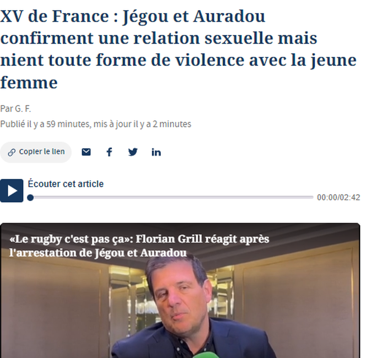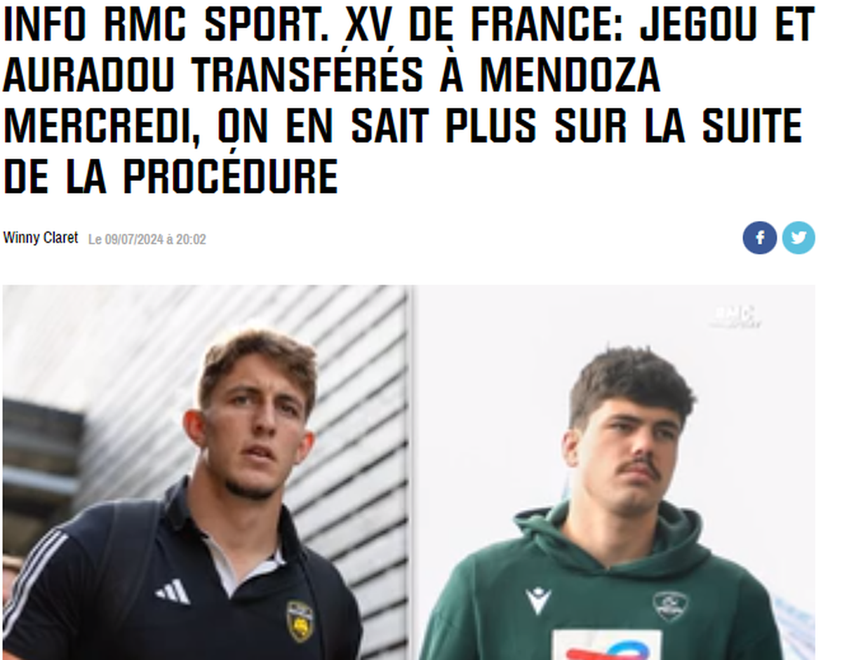 También, el medio deportivo francés RMC Sport replicó las teorías que planteó el entorno de Jegou, uno de los implicadores que arriesga la acusación de abuso sexual con acceso gravemente ultrajante, cometido por dos o más personas.