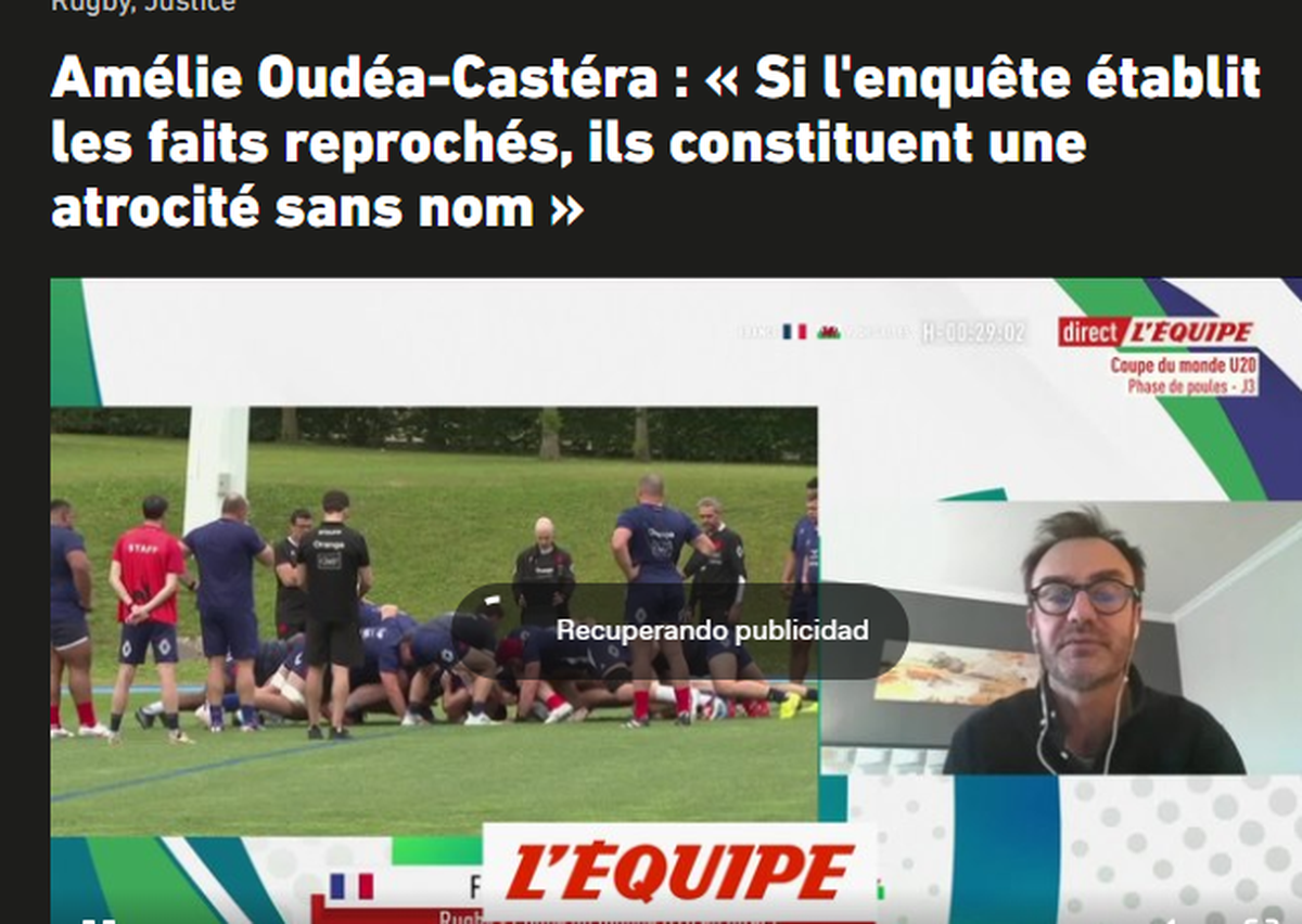 "Si la investigación establece los hechos denunciados, constituyen una atrocidad indescriptible. Mis pensamientos están con la víctima. Gracias a Florian Grill por sus palabras justas y su emoción que todos compartimos esta mañana (por este martes)", manifestó la funcionaria.